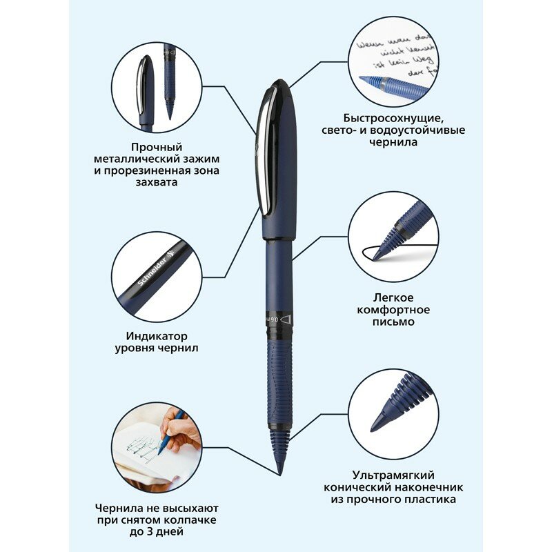 Ручка-роллер SCHNEIDER "One Business", синяя, корпус темно-синий, узел 0,8 мм, линия письма 0,6 мм, 183003 Комплект : 1 шт .