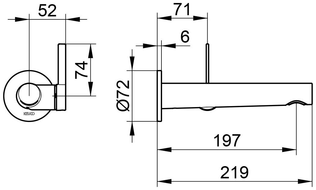Внешняя часть встраиваемого смесителя для раковины Keuco IXMO, арт. 59516011101, длина излива 19,7см, круглый отражатель