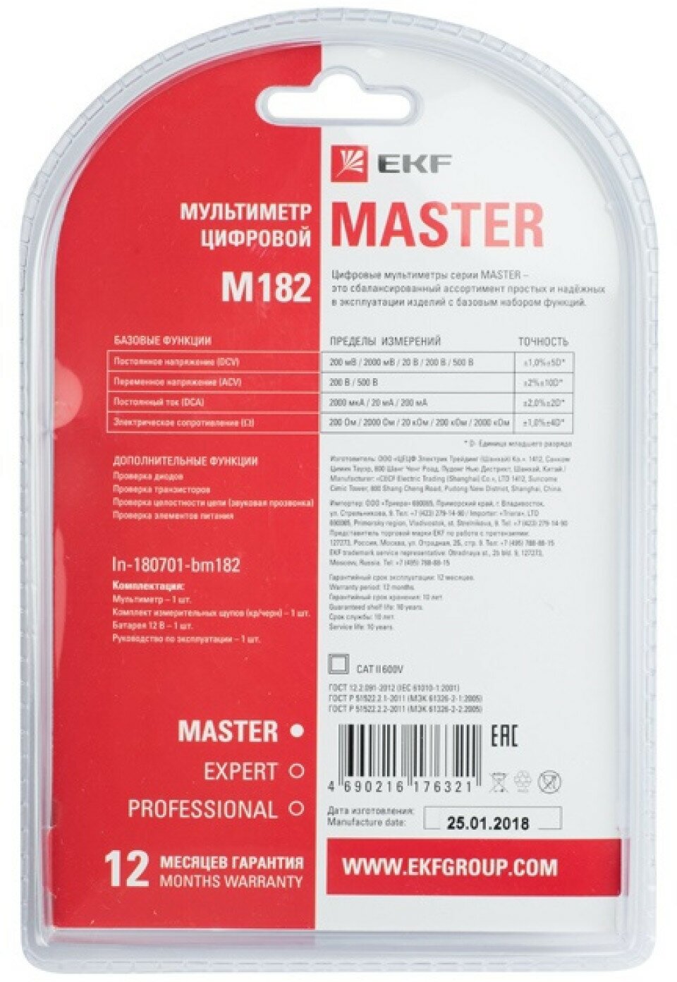 EKF Инструмент In-180701-bm182 Мультиметр цифровой M182 Master