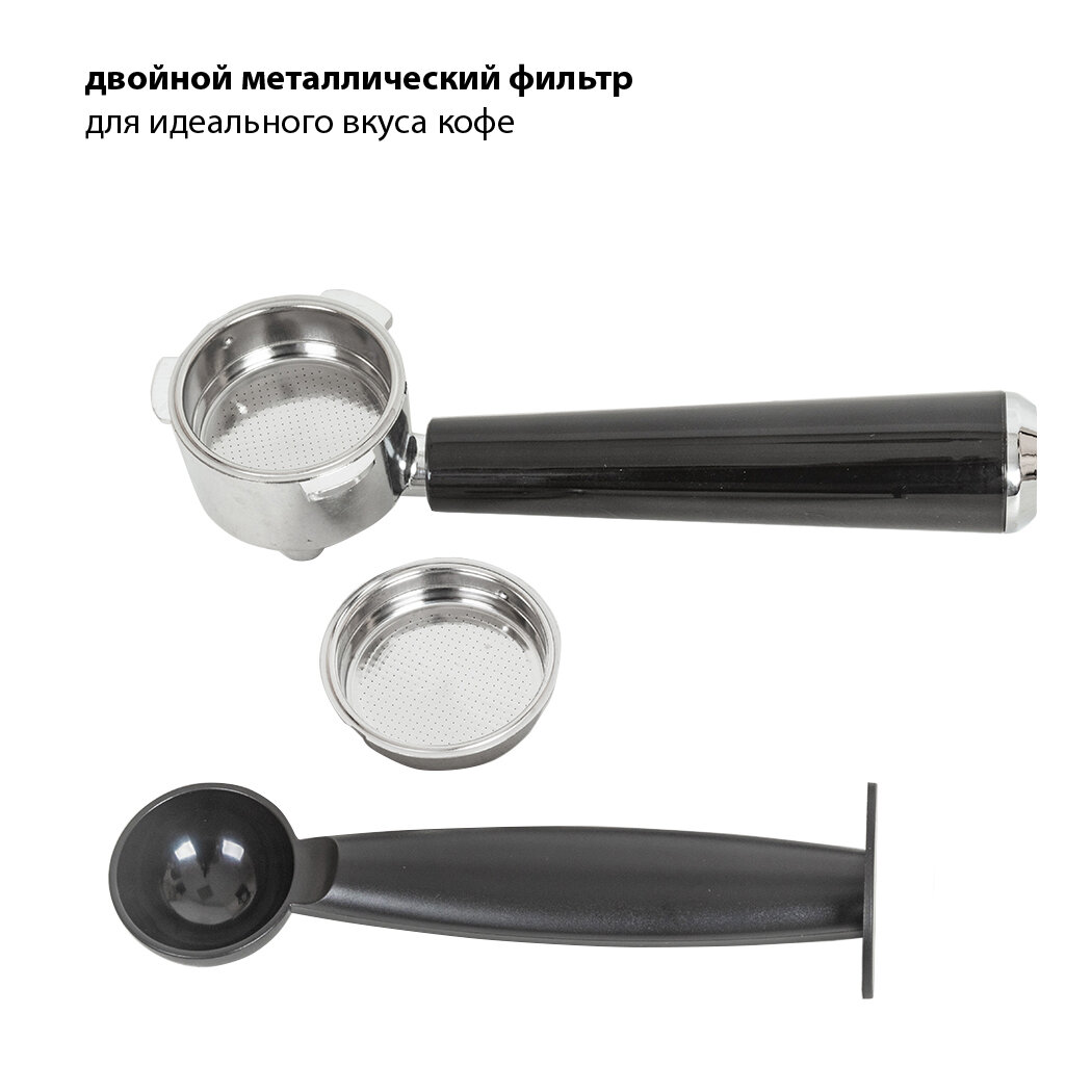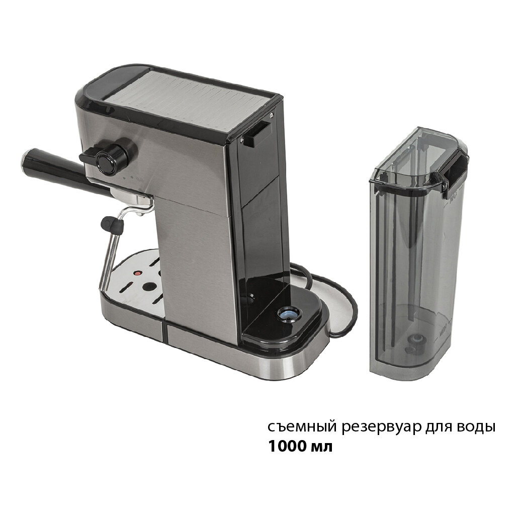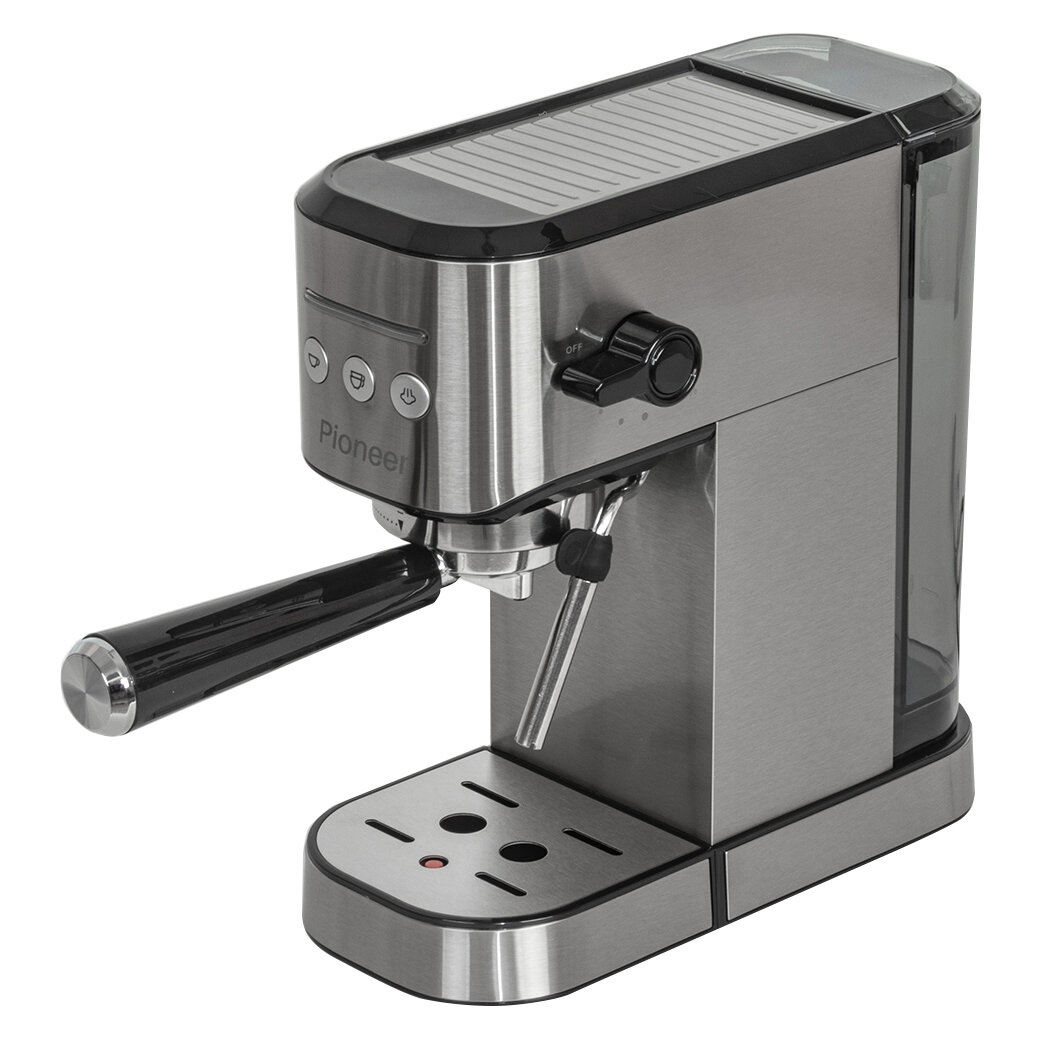 Кофеварка рожковая Pioneer с капучинатором и двойным фильтром, съемный резервуар 1 л, приготовление 1 или 2 чашек, генерация пара, подогрев чашек, 1350 Вт