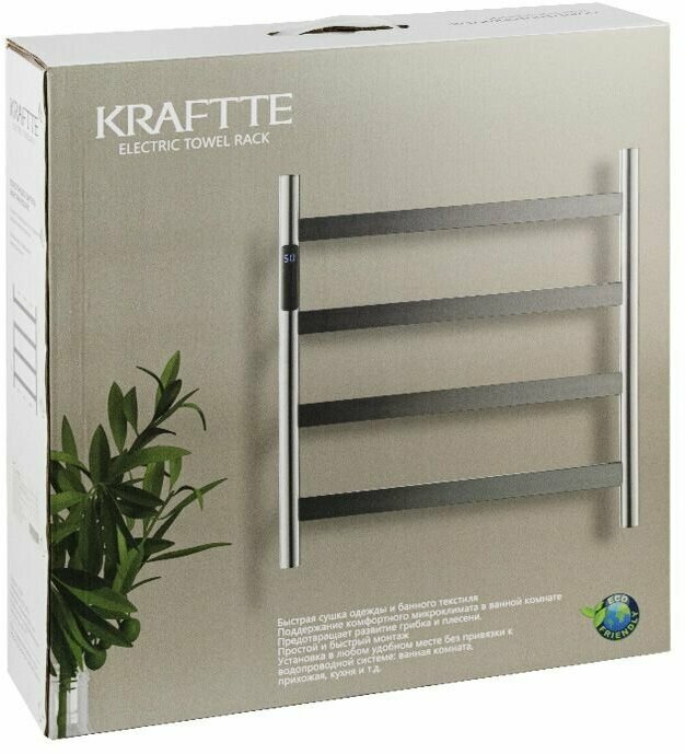 Полотенцесушитель электрический KRAFTTE, хром, матовый, лесенка 47,5 х 50,5 х 9 на 4 перекладины из нержавеющей стали, с таймером до 8 часов