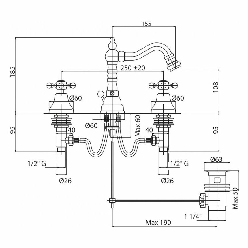 Смеситель для биде Cezares Lord для биде на 3 отверстия, с донным клапаном, бронза (Lord-BBS2-02)