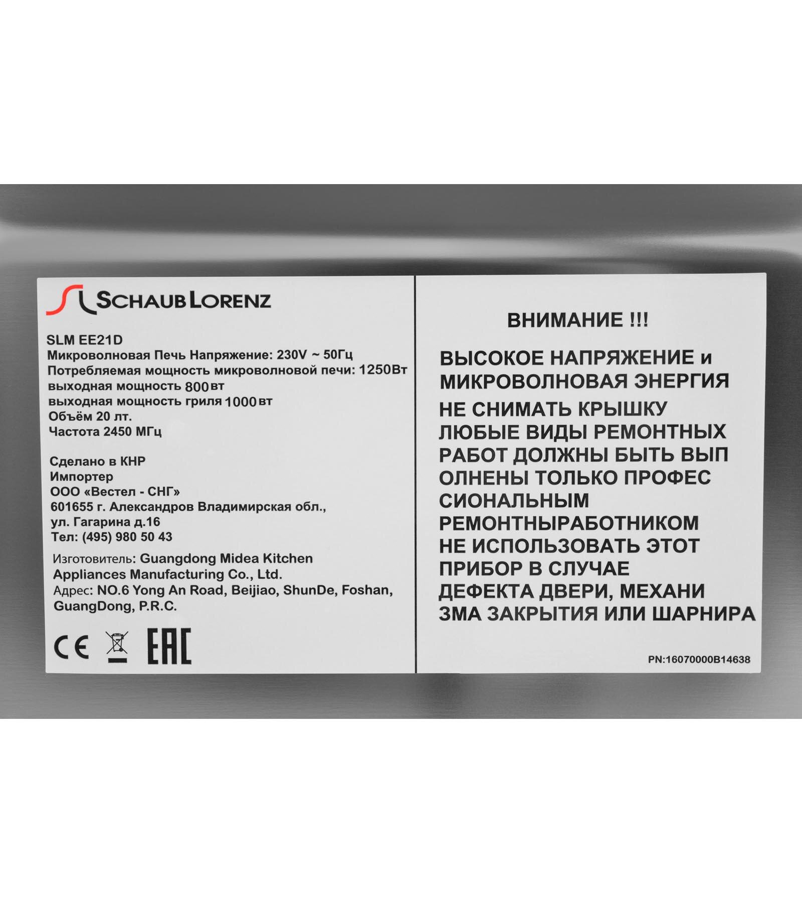 Встраиваемая микроволновая печь Schaub Lorenz SLM EE21D интересное: