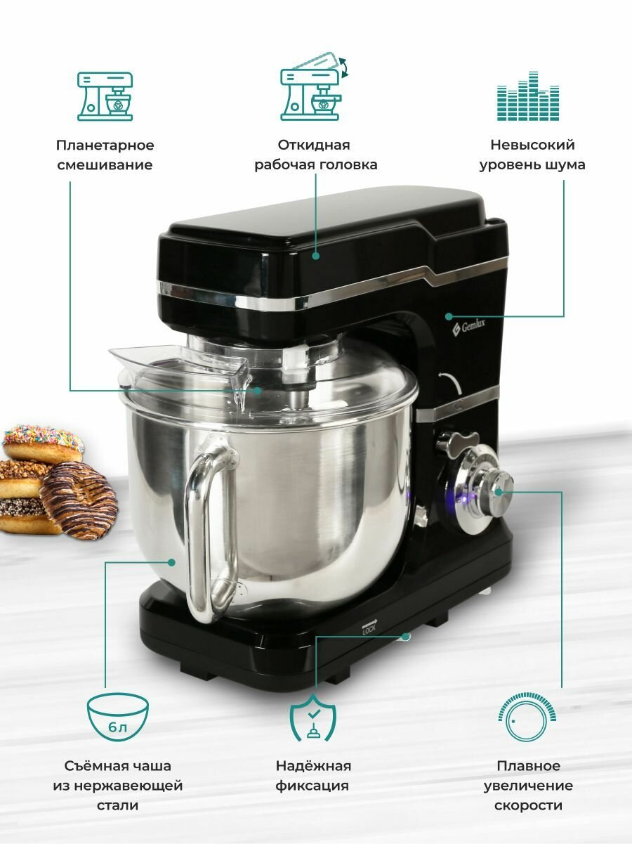 СохранитьПланетарный миксер GEMLUX GL-SM6.8 Черный интересное: