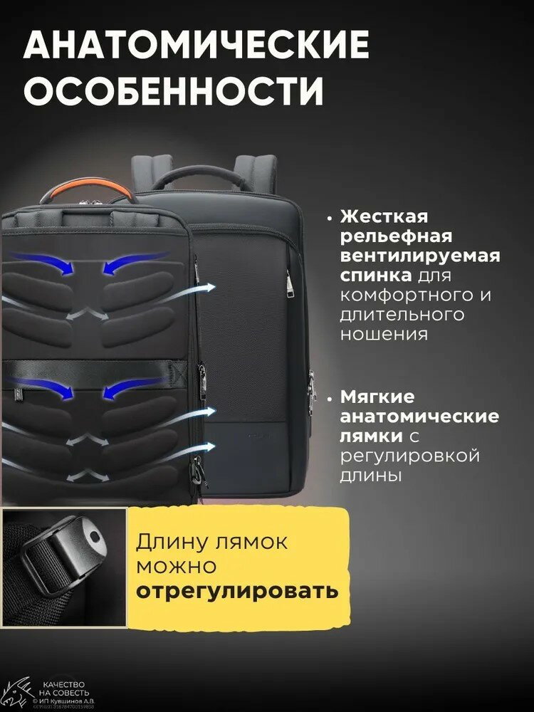 Рюкзак трансформер BOPAI черный городской портфель для работы, командировки и путешествий, для ноутбука 14"-15.6" дюймов, унисекс, 20-35 литров интересное: