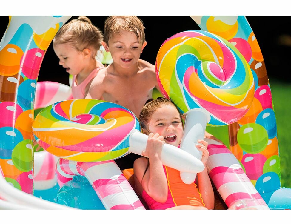 Надувной игровой центр Intex Территория сладостей с горкой и надувными игрушками 295х191х130 см, от 2 лет, 57149 интересное:
