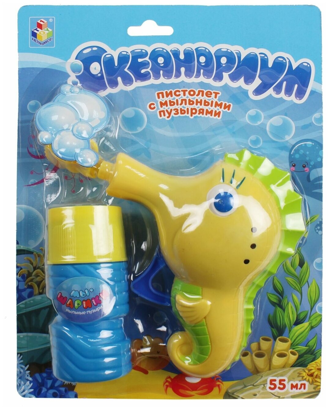 Купить Набор для пускания мыльных пузырей 1TOY "Океанариум" с пистолетом в виде морского конька (50 мл.)