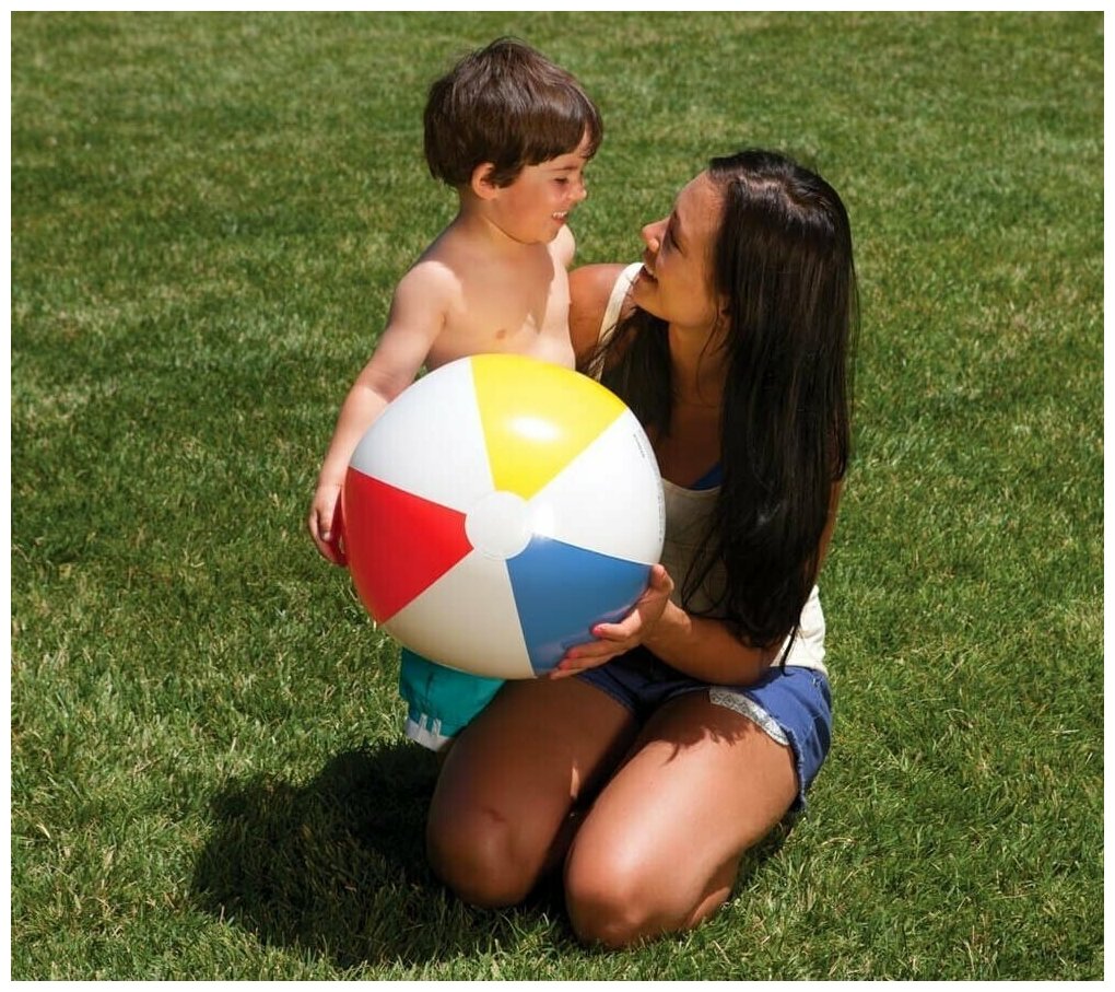 Надувной пляжный мяч INTEX разноцветный для игр в воде и на суше, диаметр 51 см