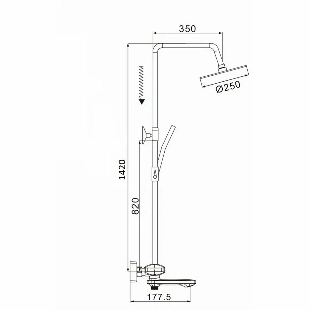 | Длина верхнего душа | 300 мм |