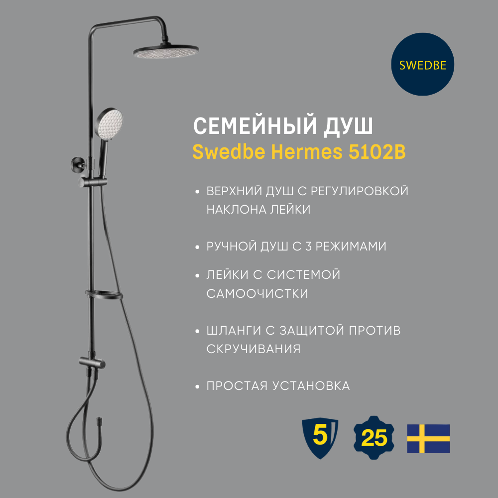 Ниже Вы можете прочитать отзывы на Семейный душ с нижним подключением Swedbe Hermes, цвет: черный 5102B, ознакомится с подробными характеристиками, посмотреть интересные обзоры и фотографии на Семейный душ с нижним подключением Swedbe Hermes, цвет: черный 5102B.