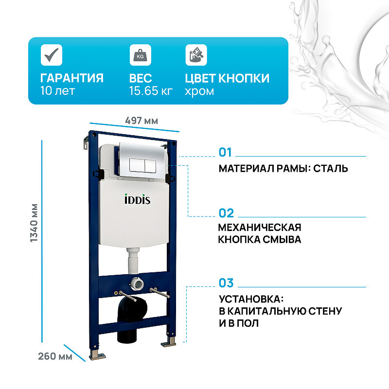 Комплект 2 в 1: инсталляция и клавиша смыва Iddis OPH00GCi32K Optima Home