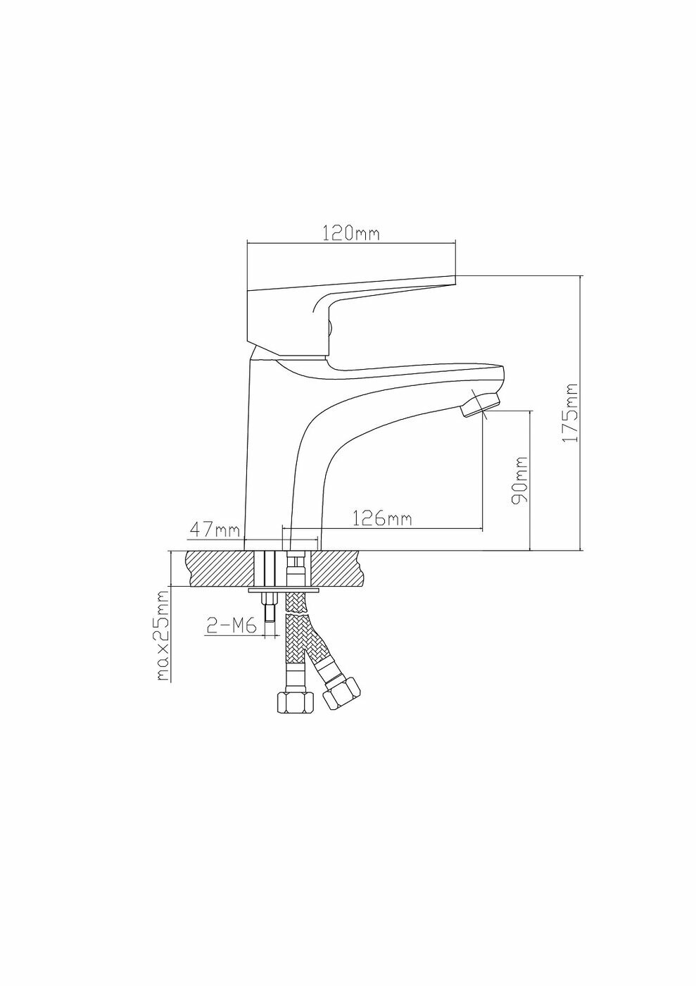 Смеситель для раковины, Boou B8282-1, латунь, литой корпус, однорычажный, с гибкой подводкой