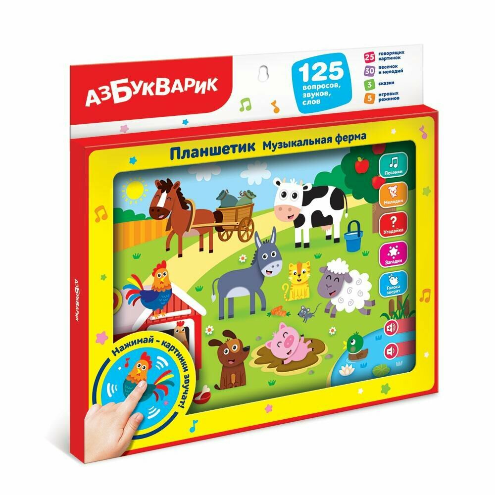 Планшетик музыкальная ферма, игрушка Азбукварик 040-0(074-1)
