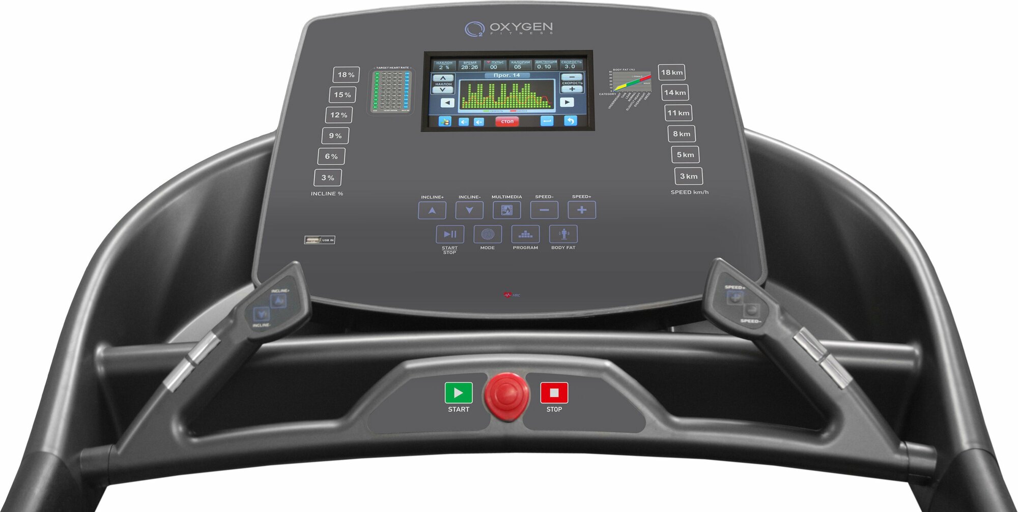 Профессиональная беговая дорожка OXYGEN PLASMA III LC TFT HRC