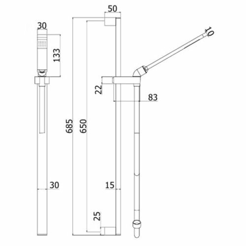 Душевая стойка из латуни LIFE 755мм, фиксаторы неподвиж. из металла, поворот.подвиж.крепл.для душа из металла , душ из металла , шланг из PVC 1500мм, цвет черный матовый, LIFE ZSAL135NO