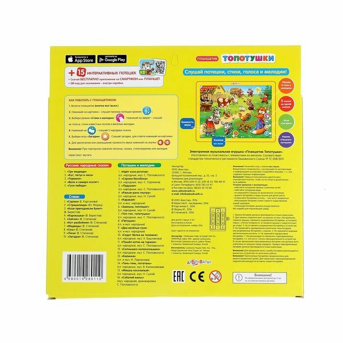 Купить Планшетик "Топотушки" (15 песенок, 10 стихов, 5 сказок, 15 говорящих картинок, 30 звуков, мелодий, загадок)