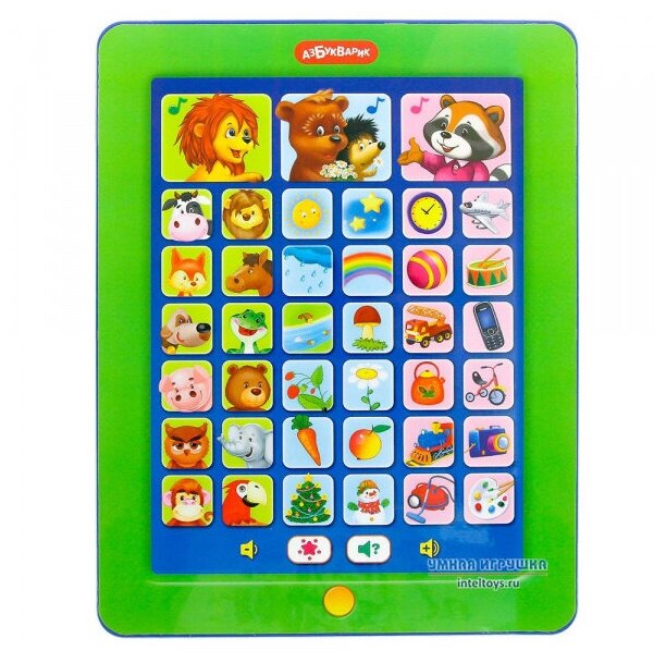 | Плюсы: | Планшет при нажатии на картинку издает соответствующий звук или поет песню.