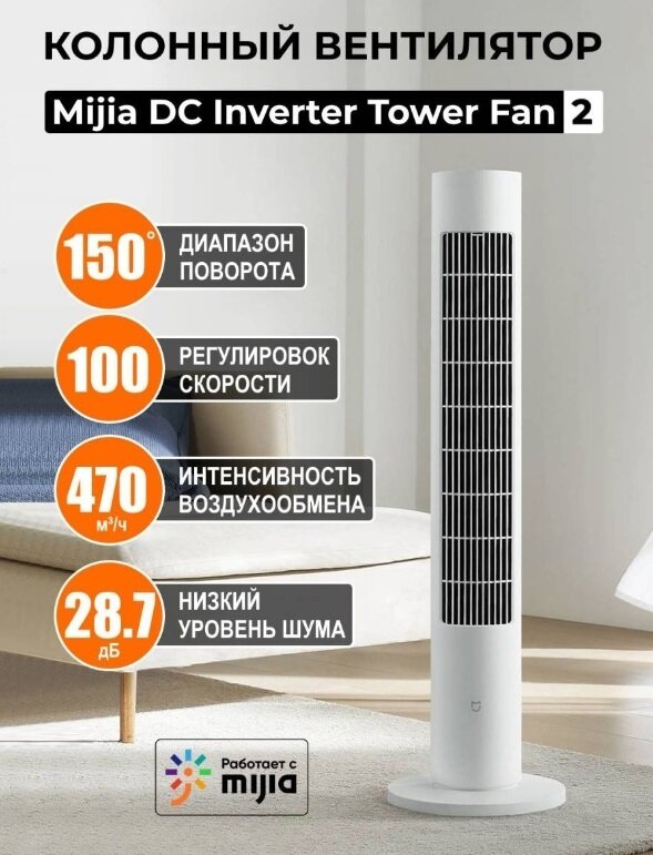 Напольный вентилятор Xiaomi Mijia DC Inverter Tower Fan 2, белый (BPTS02DM) интересное: