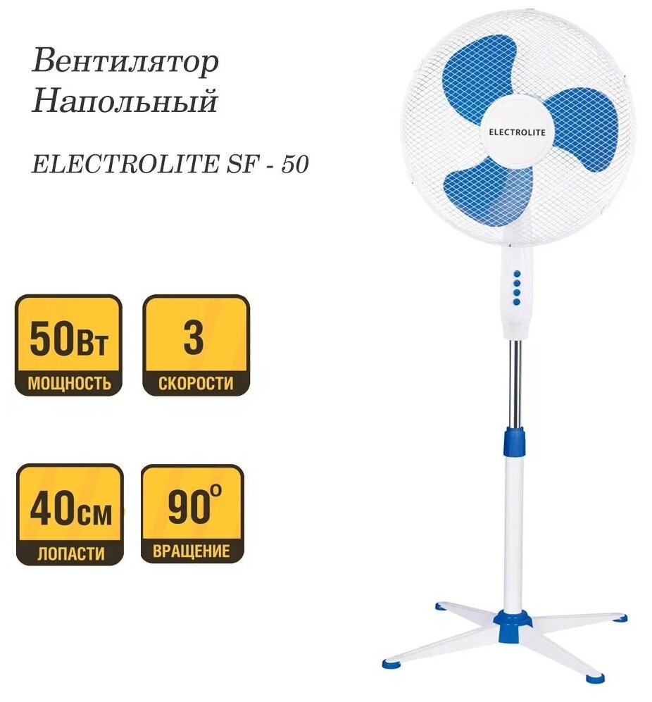 Напольный вентилятор ELECTROLITE SF 50 белый 50 вт.,3 скорости интересное: