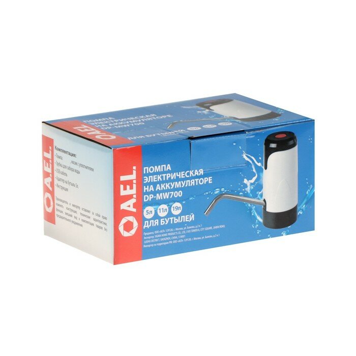 Помпа для воды AEL DP-MW700, электрическая, 1.2 л/мин, 1200 мAч, от USB, чёрно-белая