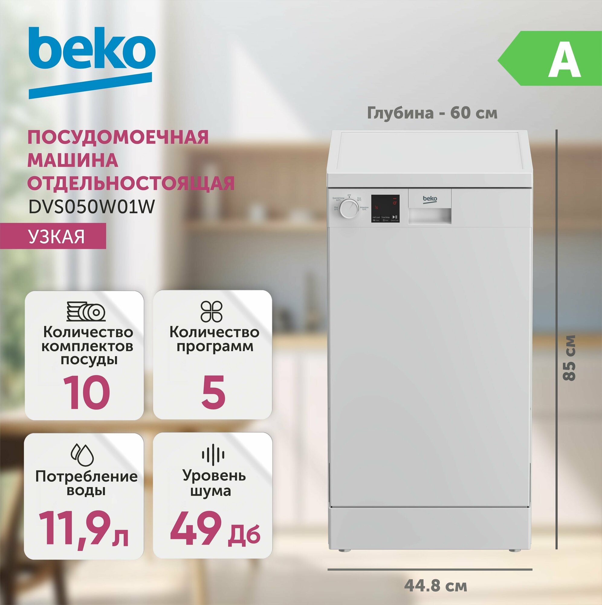 Посудомоечная машина BEKO DVS050W01W, 45 см, белая