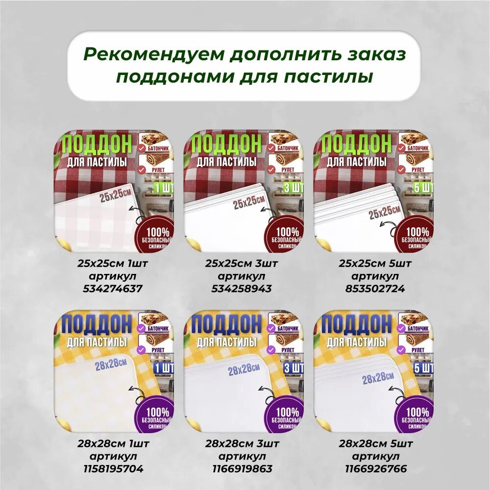 | Минусы: | Силиконовые противни под пастилу можно было сделать повыше. |