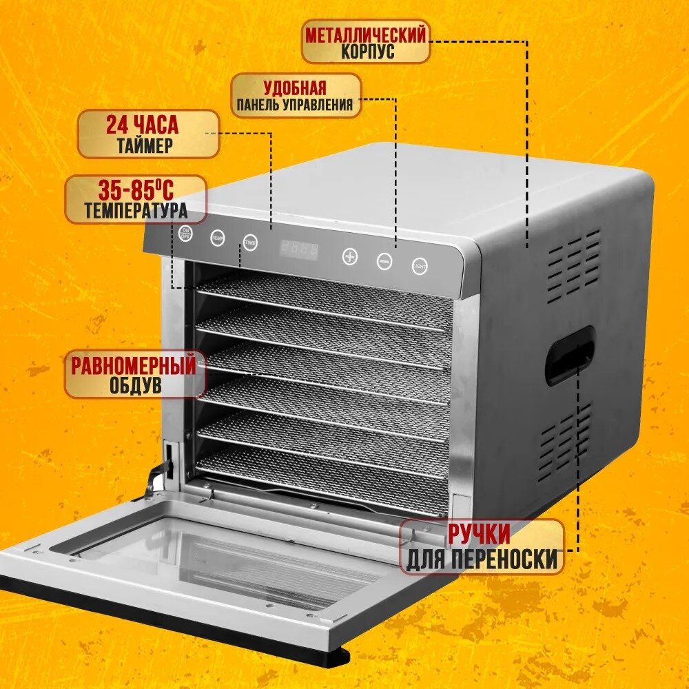 Дегидратор для мяса TAKARA DF-07 в ДВУХСЛОЙНОМ КОРПУСЕ из нержавеющей стали / сушилка для овощей и фруктов