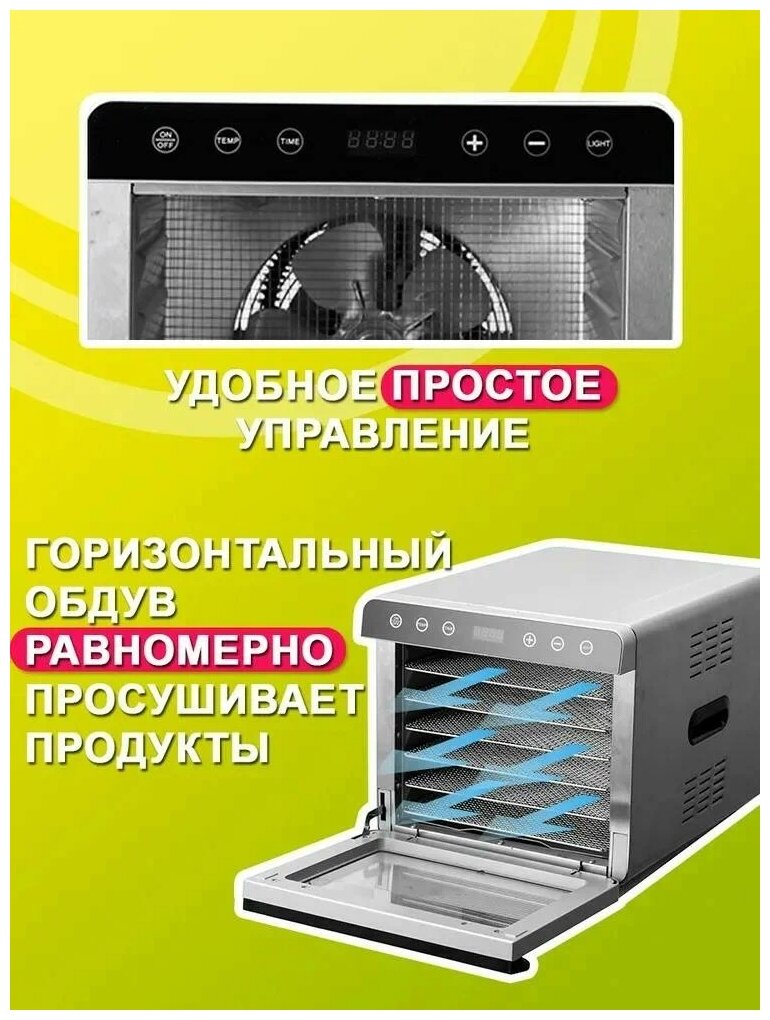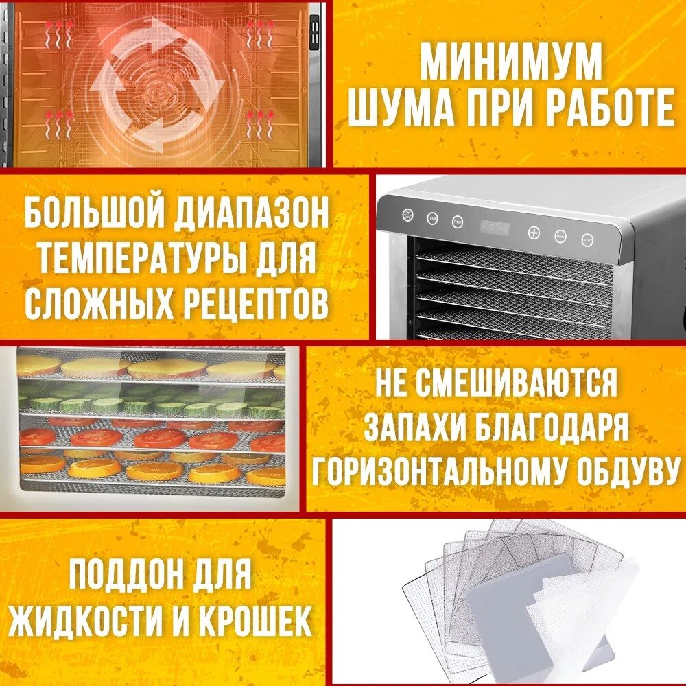 Сушилка для овощей и фруктов TAKARA DF-08W в двухслойном корпусе из нержавеющей стали, Дегидратор для сушки электрический, Овощесушилка, Гарантия - 3 года