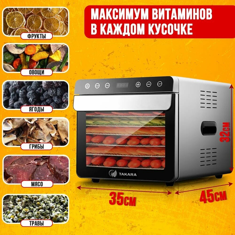 Сушилка для овощей и фруктов TAKARA DF-08B в двухслойном корпусе из нержавеющей стали, Гарантия - 3 года