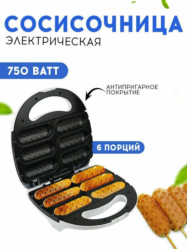 Сосисочница-гриль для хот-догов/SK-110/ ход-дог мейкер/6 форм/антипригарное покрытие/750Вт/дисплей/черный