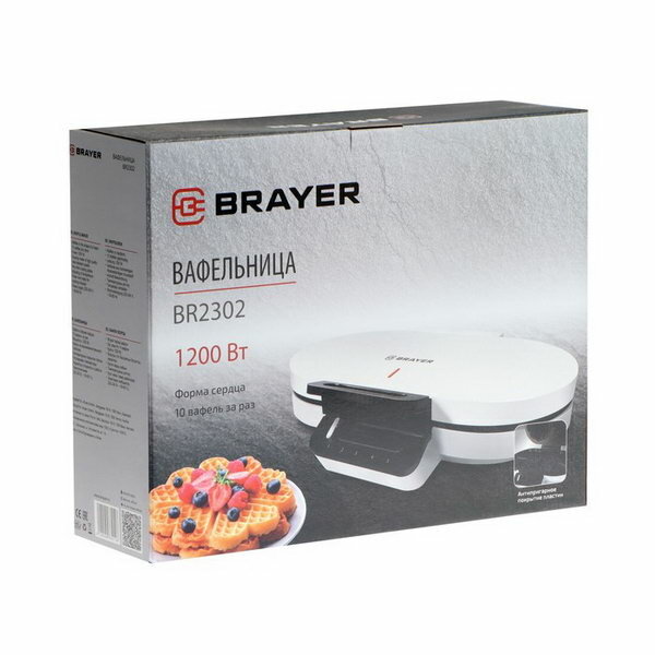 Вафельница BRAYER 2302BR, 1200 Вт, форма сердца, антиприграное покрытие интересное: