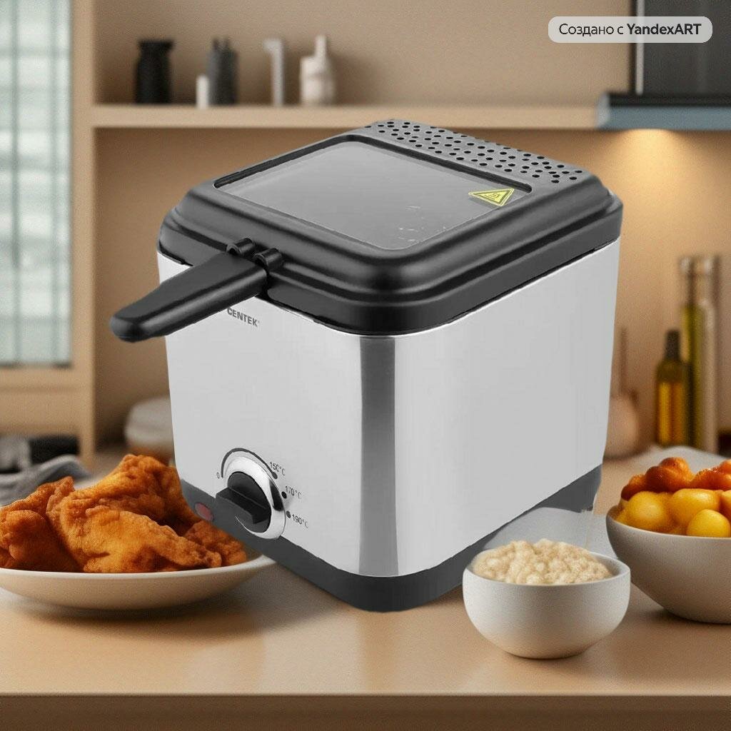 Фритюрница для дома CENTEK CT-1430 900 Вт объём 1,5л Чаша - антипригарная, стальной корпус, окно