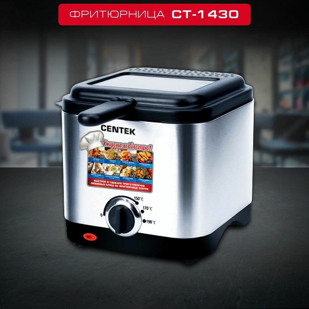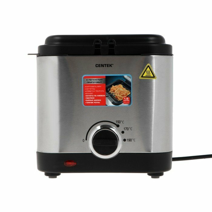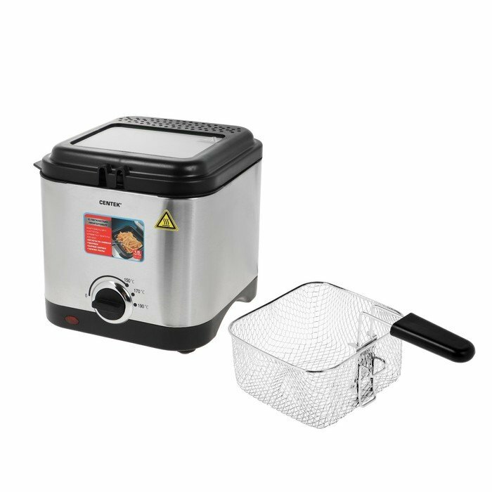 Фритюрница для дома CENTEK CT-1430: 900Вт, объём 1.5л, антипригарная чаша, стальной корпус, окно