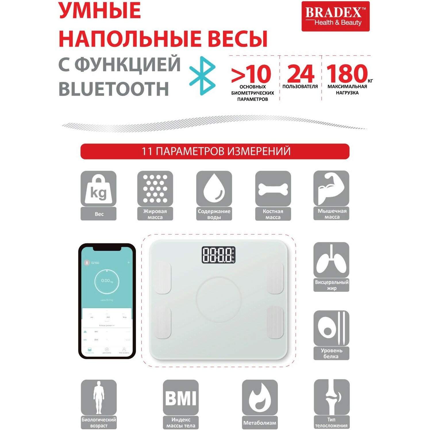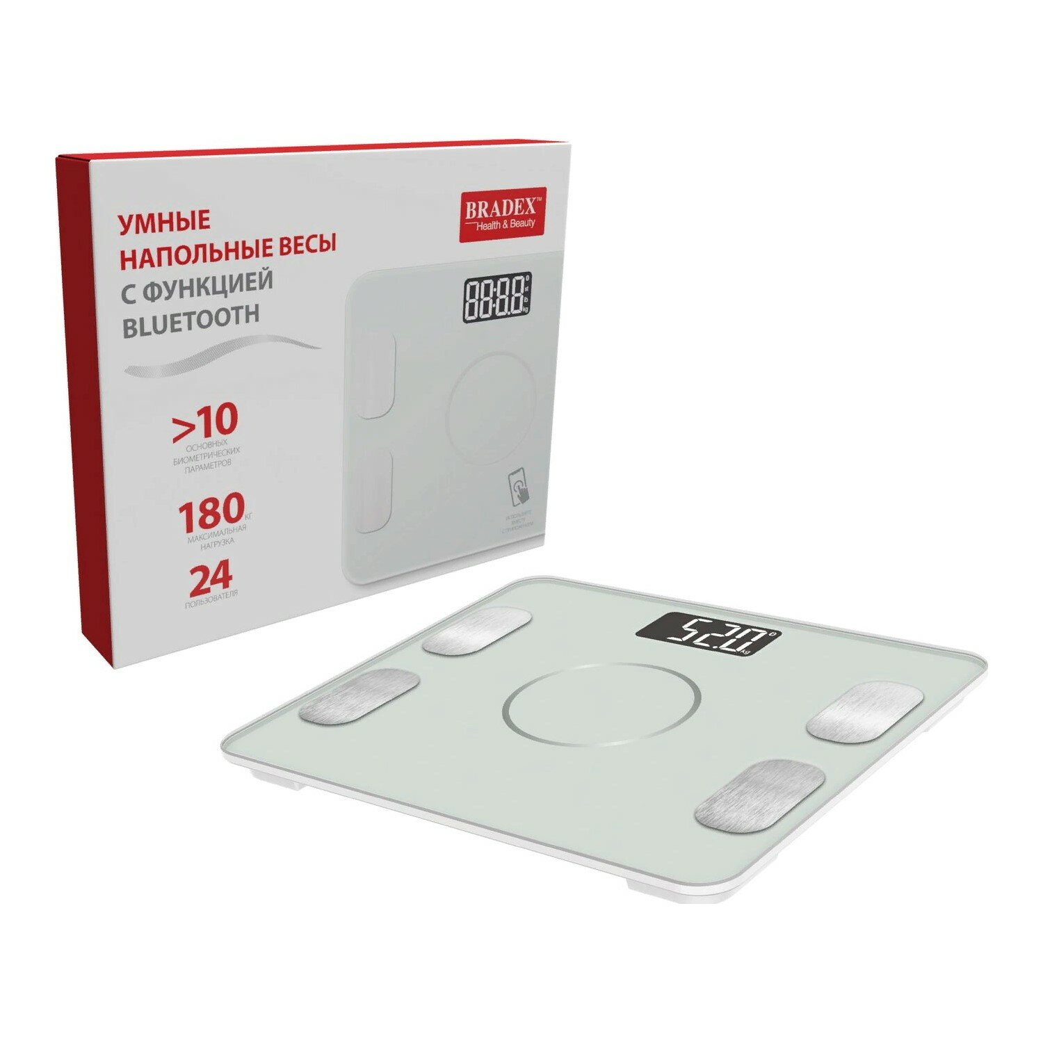 Умные напольные весы с функцией Bluetooth, BRADEX, белые