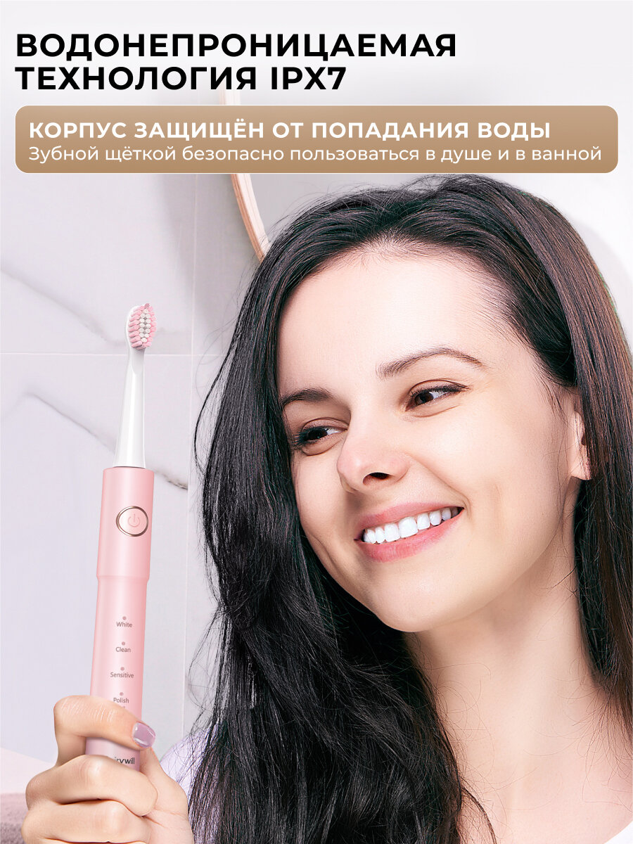 Электрическая зубная щетка Fairywill E11, 8 сменных насадок, 5 режимов для чистки полости рта, розовая RC071