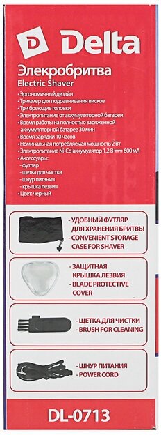 Бритва электрическая DELTA DL-0713 черный: 2 Вт, аккум. 1,2 В (40)
