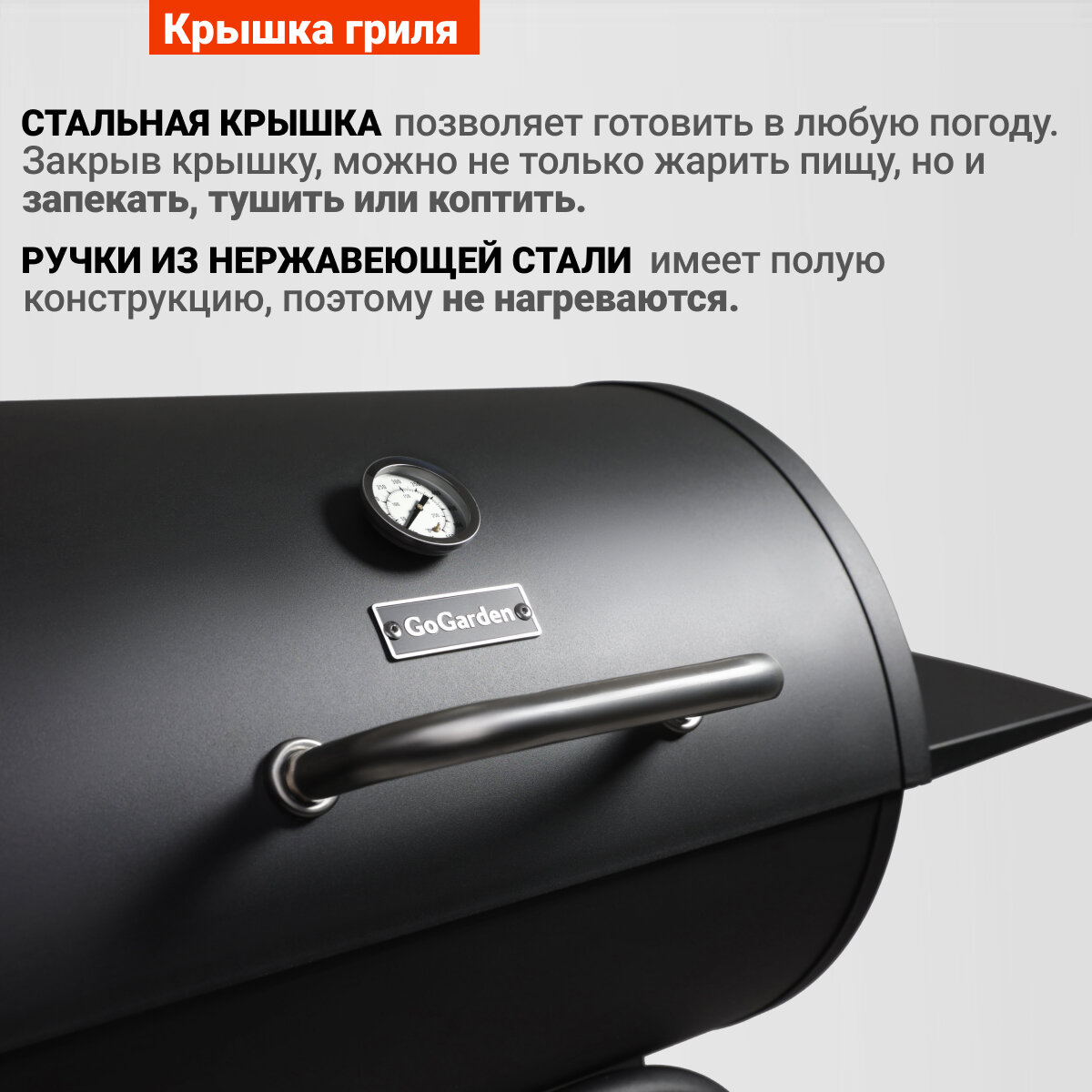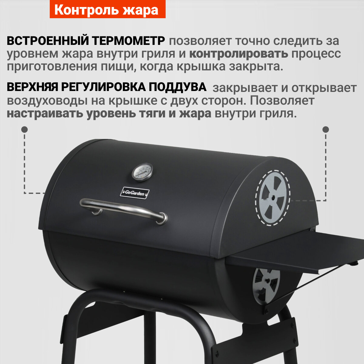 Гриль угольный бочка GOGARDEN Fiesta 51 PRO, 104 х 81 x 48 см