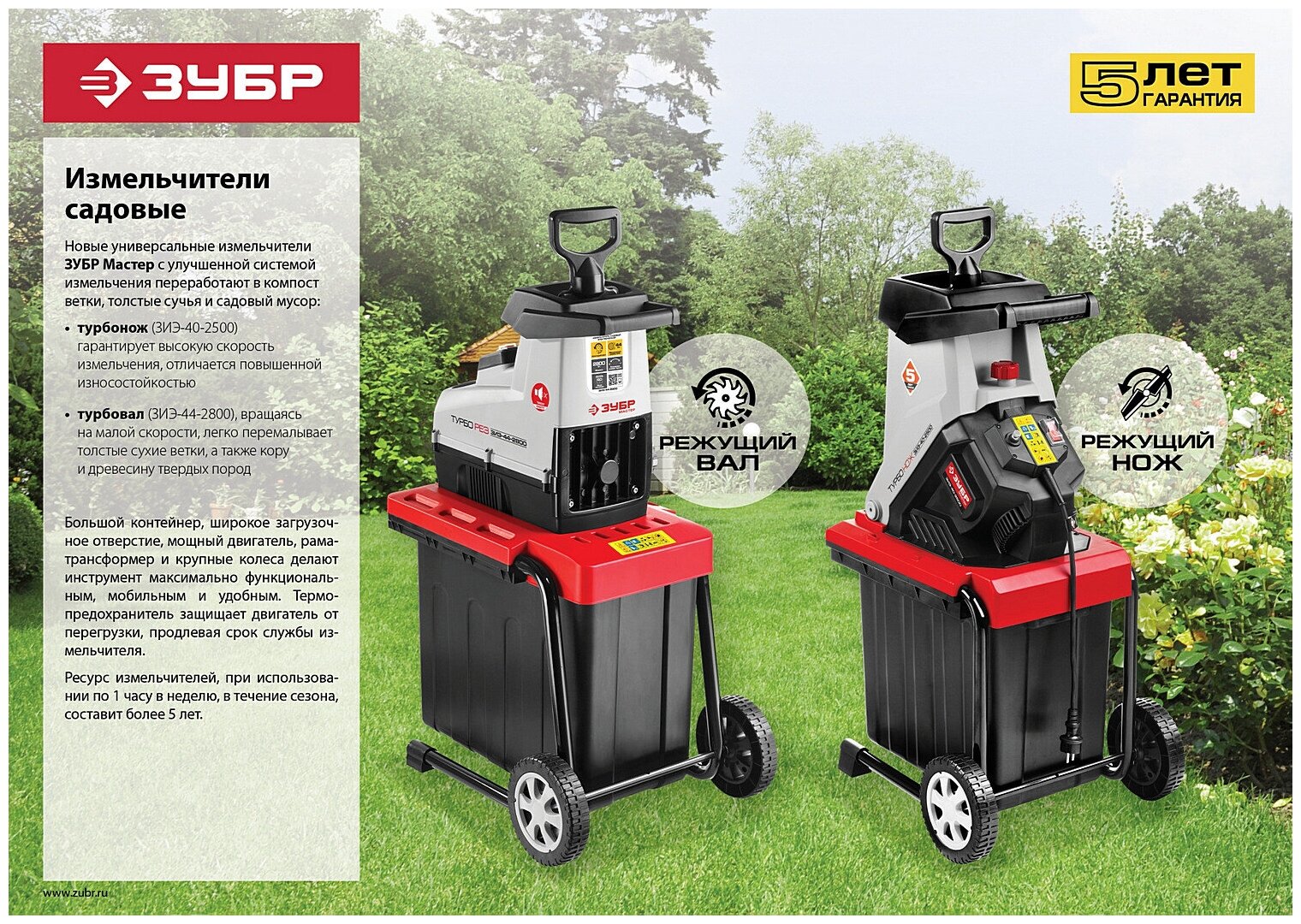 ЗУБР 2500 Вт, электрический садовый измельчитель (ЗИЭ-40-2500)