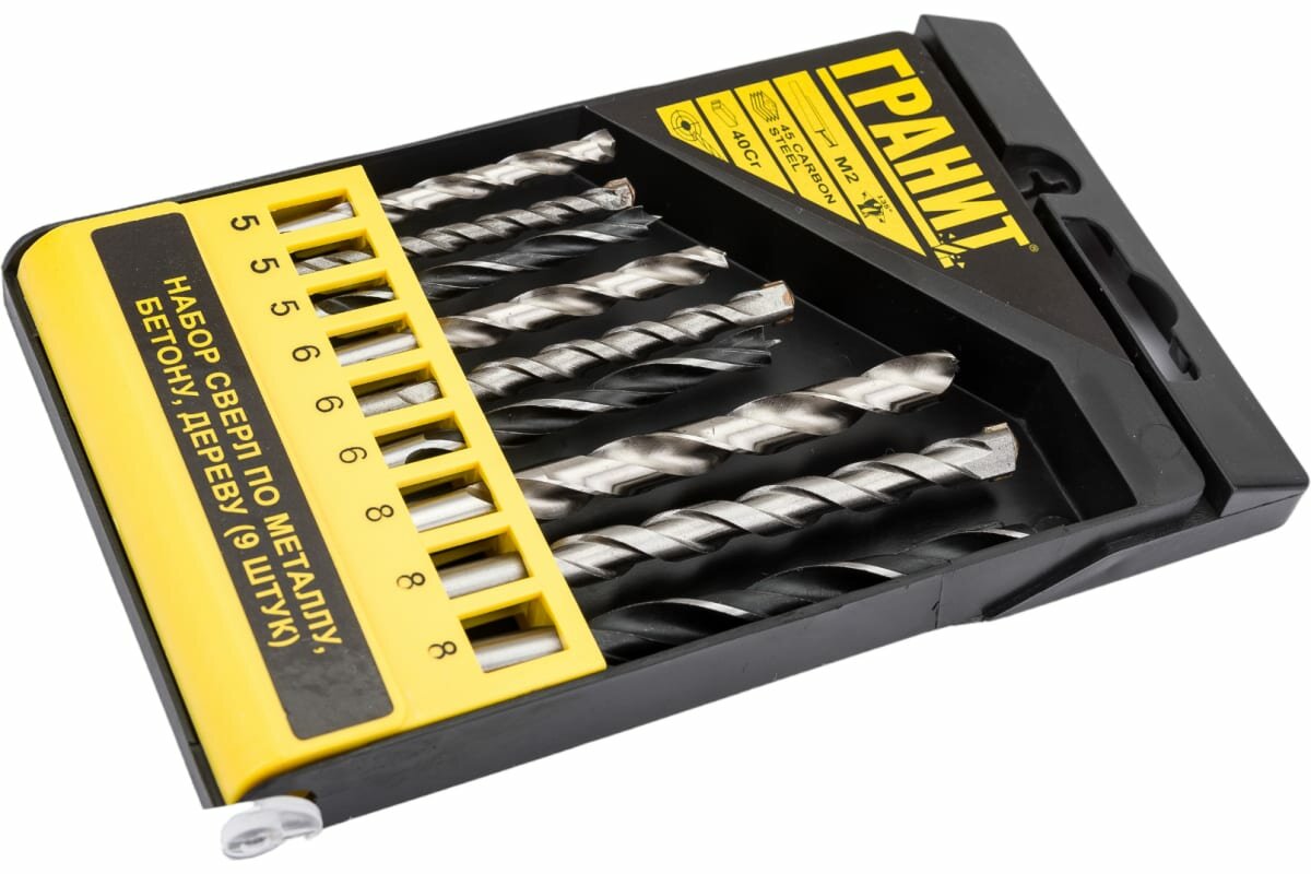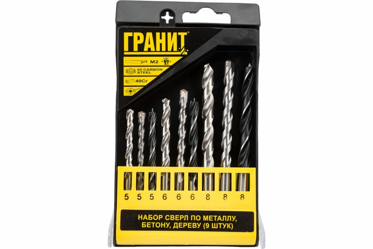 Гранит набор сверл ПО металлу, бетону, дереву из 9 штук 700004 интересное: