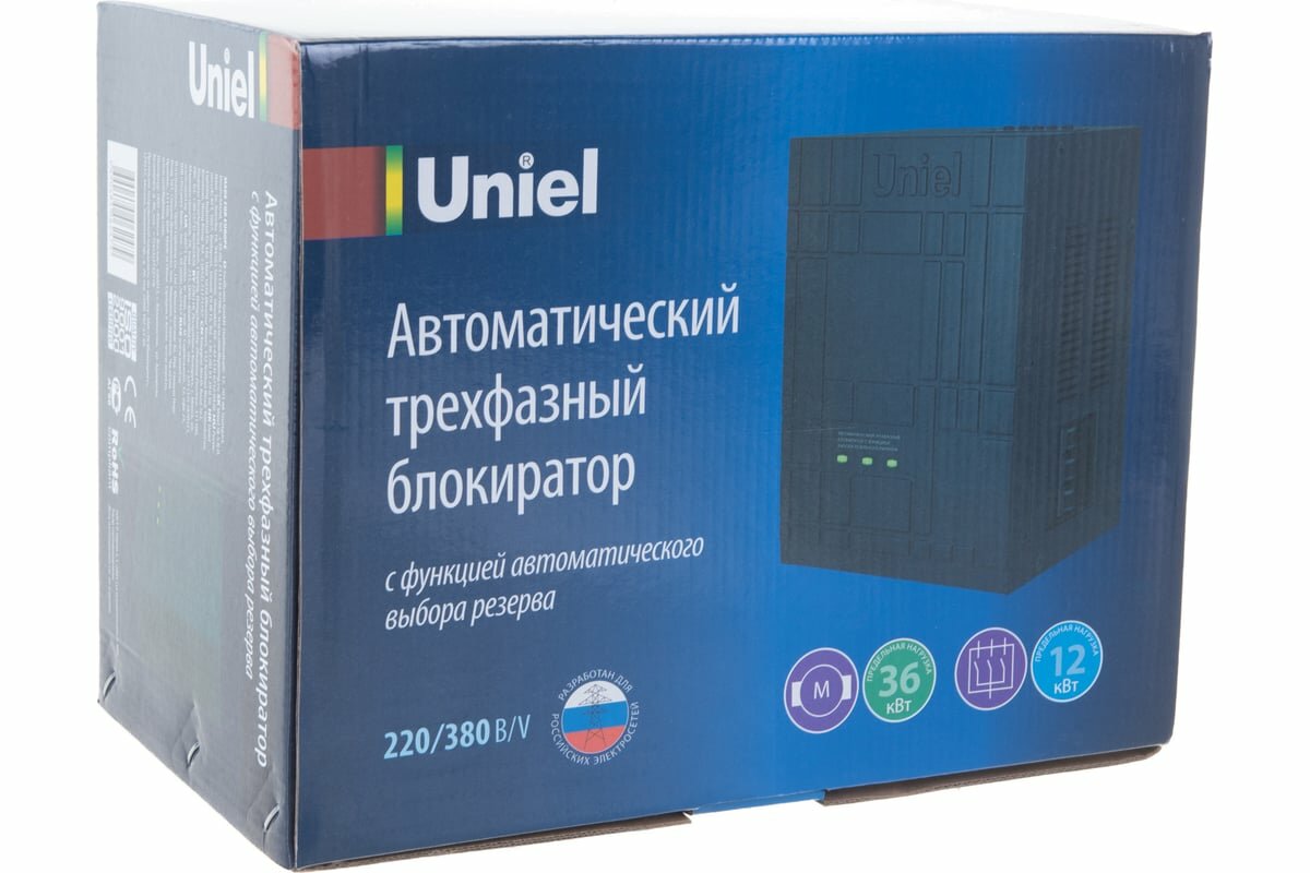Uniel UBR-55BA-3G36/SLS Автоматический трехфазный блокиратор с функцией АВР Uniel, ток 55А, заземление, мощность 36КВт