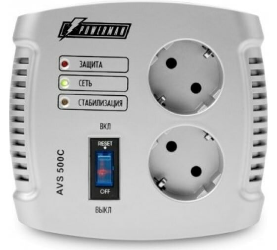 Стабилизатор напряжения Powerman AVS C на 500 ВА с сетевым фильтром для котла и дома