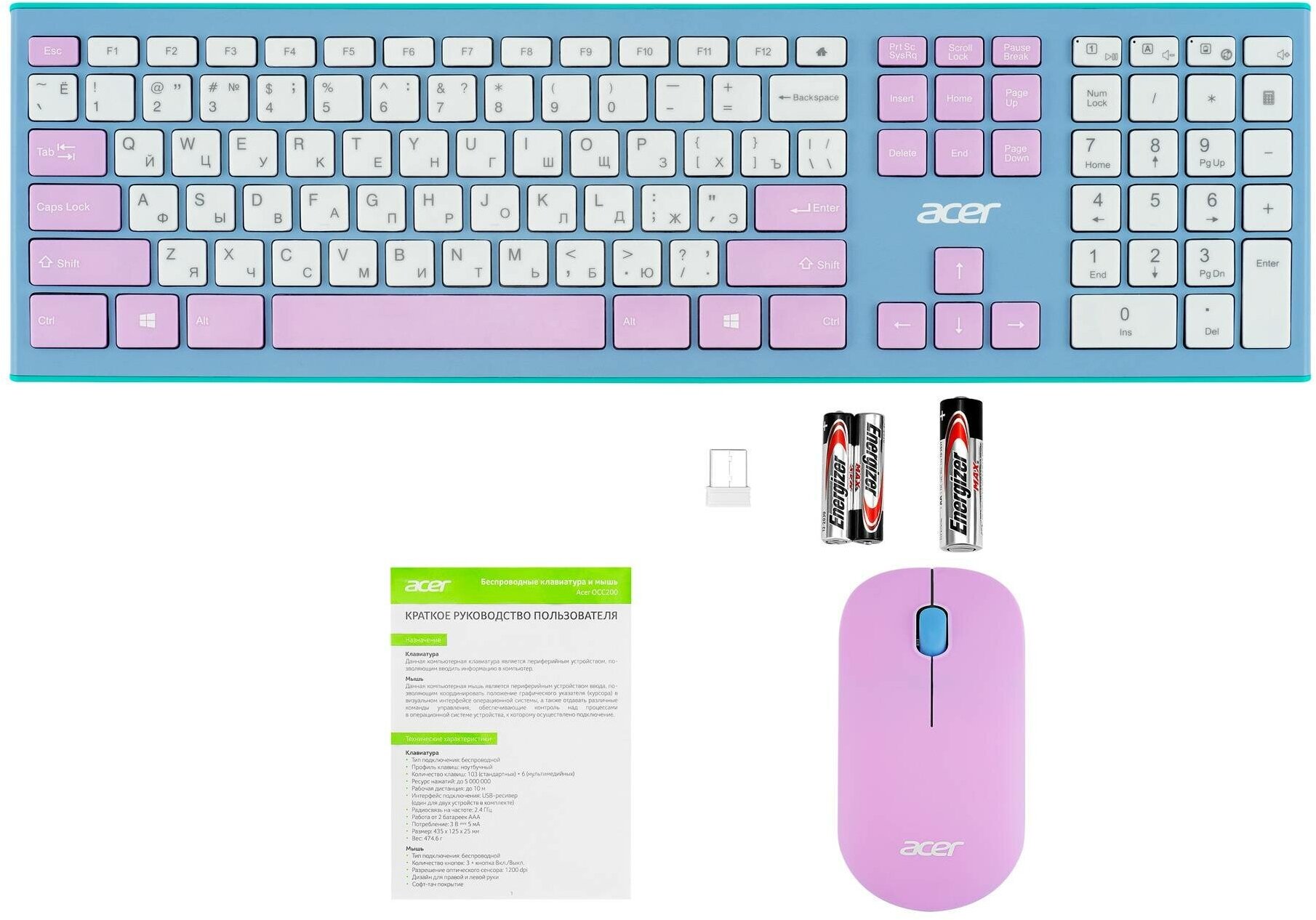 Клавиатура и мышь беспроводные Acer OCC200 зелёный/фиолетовый (ZL.ACCEE.003)