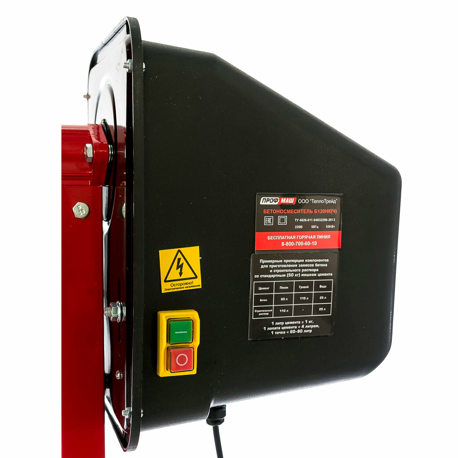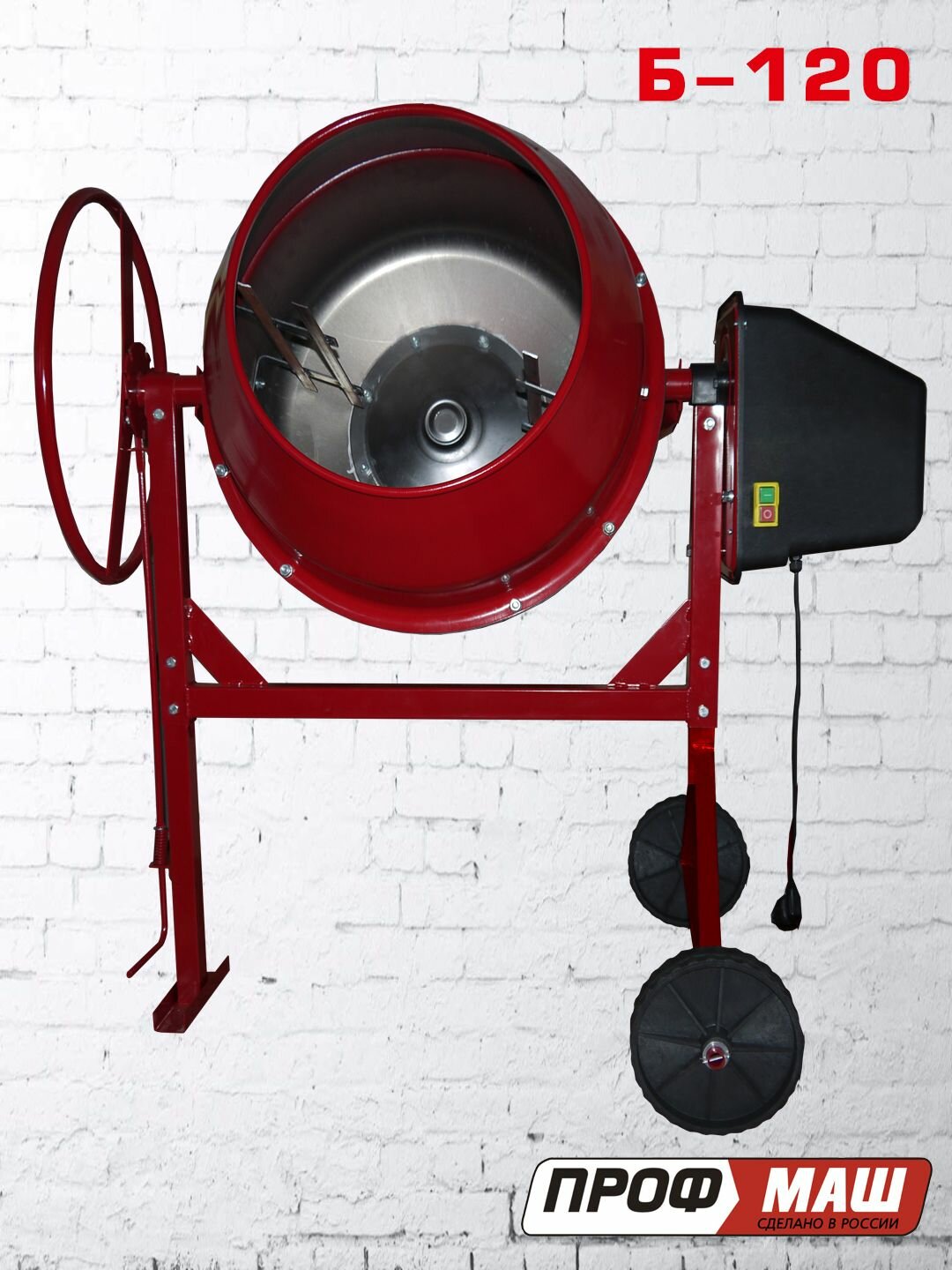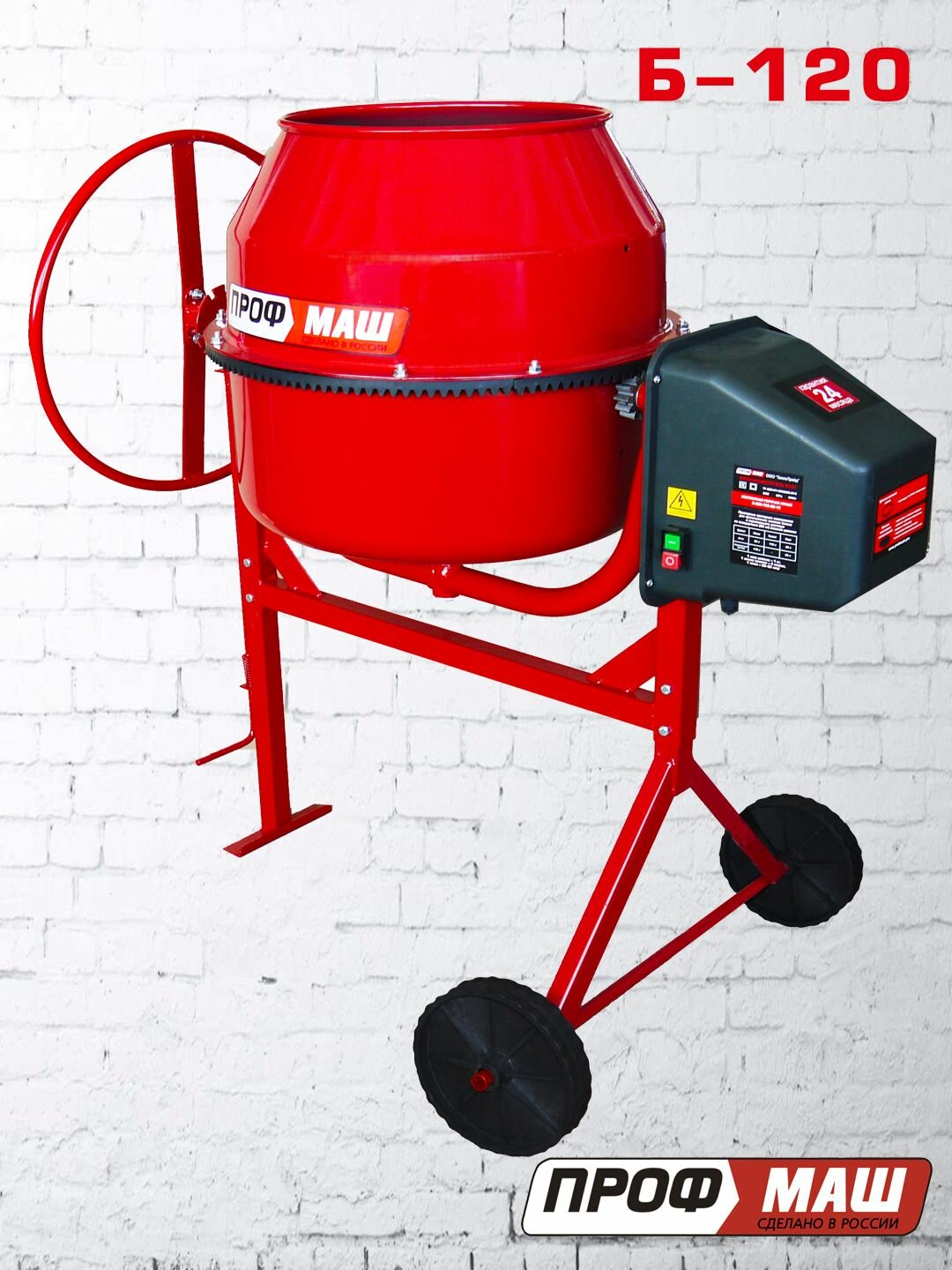 Бетономешалка строительная Профмаш Б120, полиамидный венец, объем 98 литра, мощность 550 Вт, бетоносмеситель электрический