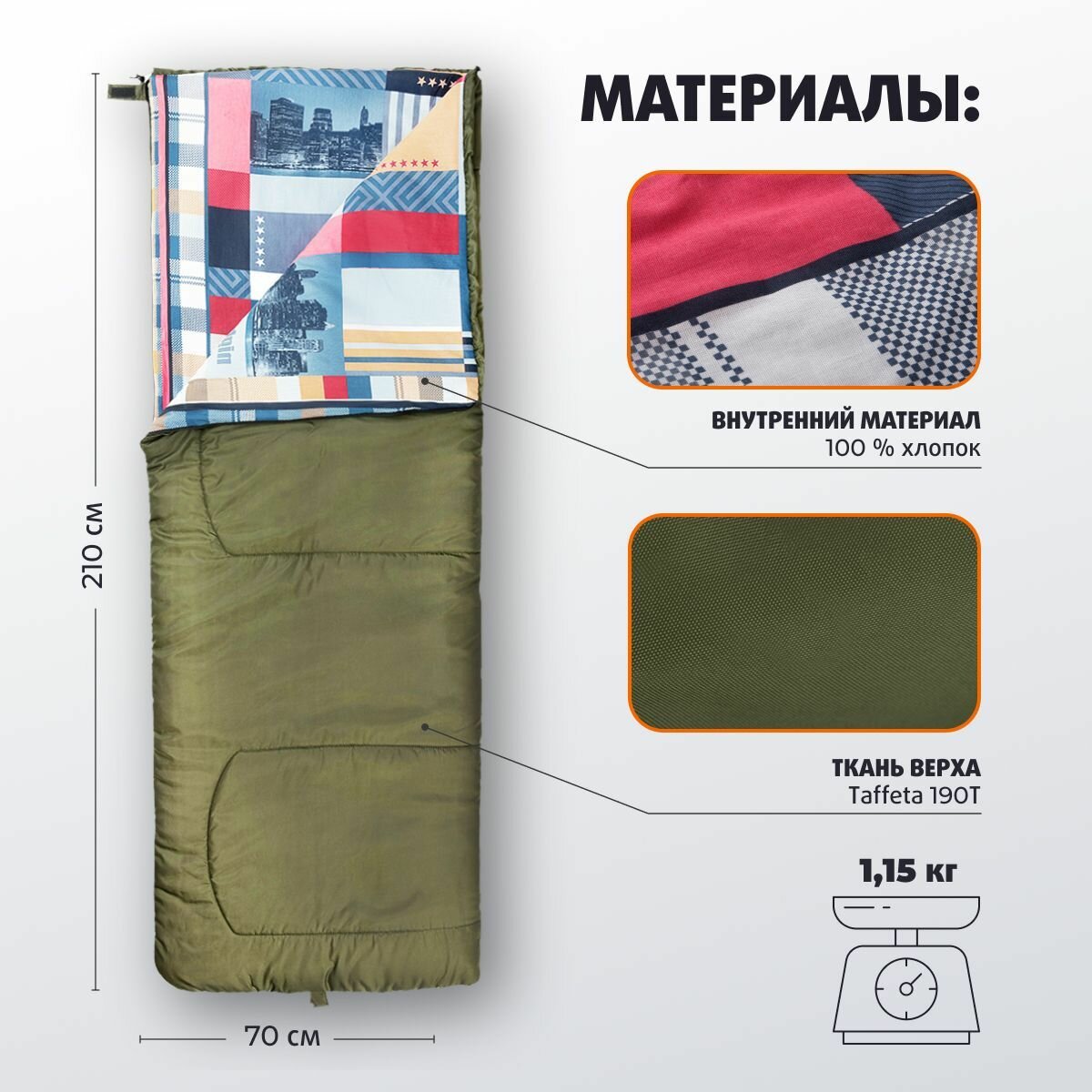 Спальный мешок-одеяло OLYMPUS 200B (185х70, холлоф., зеленый/город) (T-HS-SB-O-200B-NC) Helios интересное: