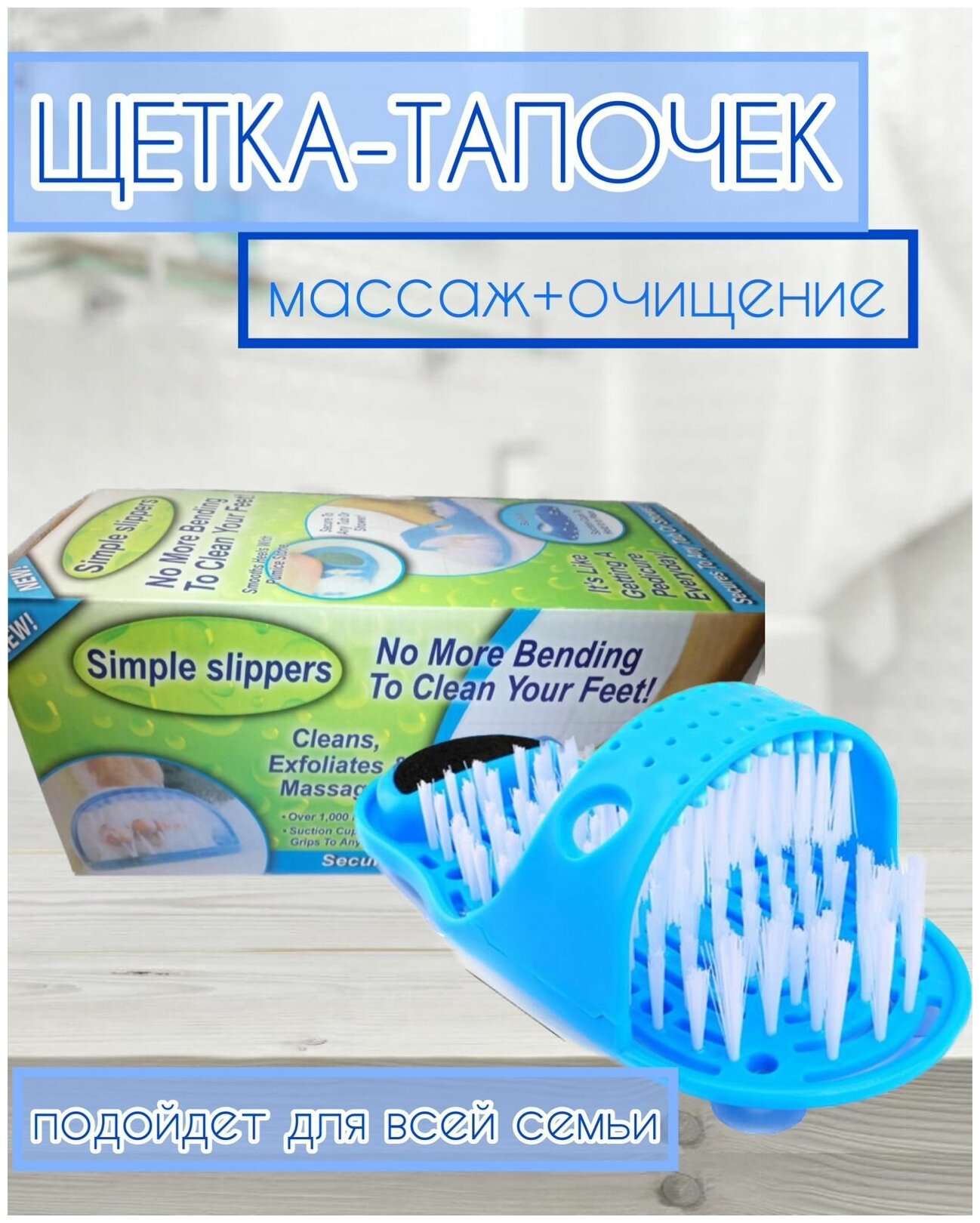 Массажный тапок щетка / СПА для мытья ног / Мочалка тапок/Синий интересное: