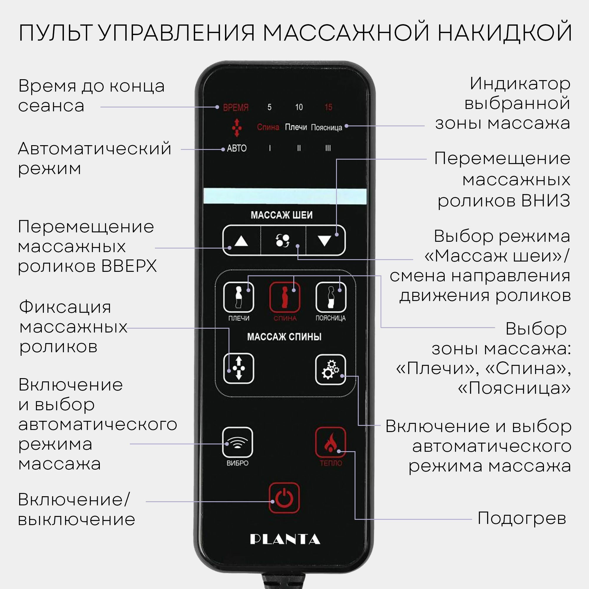 PLANTA Массажная накидка MN-1500, 12 роликов, 3 программы, вибромассаж, подогрев, автоадаптер, массажер на сиденье и кресло