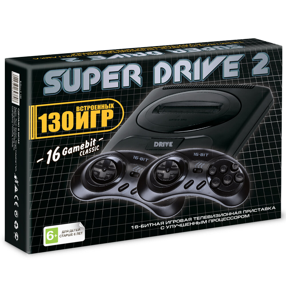 Игровая приставка 16 bit Super Drive 2 Classic (130 в 1) + 130 встроенных игр + 2 геймпада (Черная)