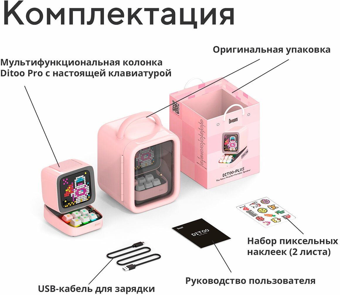 Колонка Divoom портативная Ditoo-Pro Retro Pixel Art с пиксельным LED-экраном (Pink)