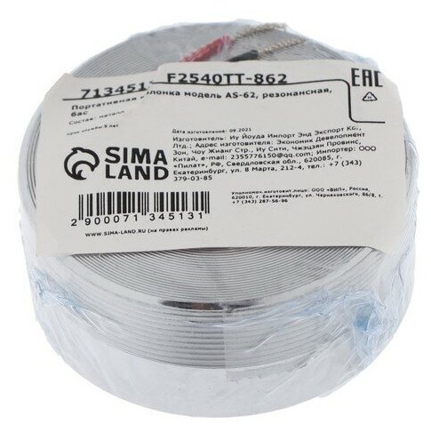 Портативная колонка AS-62, резонансная, бас,10 В, 25 Вт,4 Ом, 50 мм, звучание от поверхности