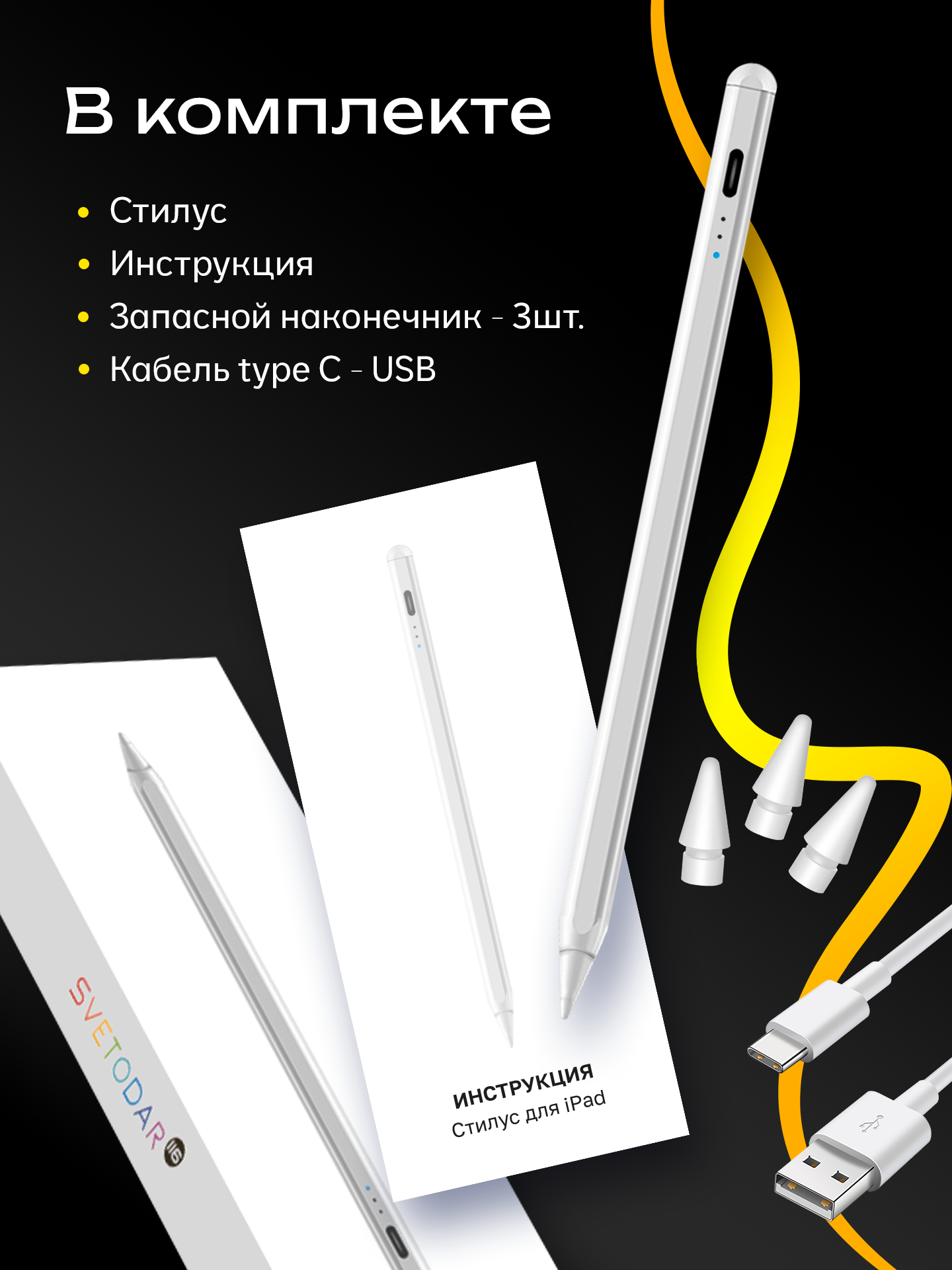 Стилус для iPad 2018, 2019, 2020, 2021, 2022 + 3 наконечника / Сенсорная ручка для планшета iPad интересное: